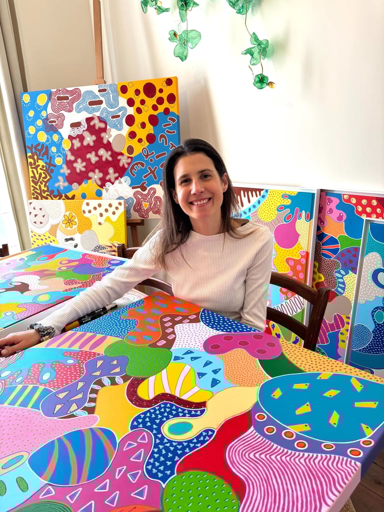 Since then, painting has become part of my daily rhythm. It is my language of joy, my bubble of oxygen, the inner fire that burns bright inside me